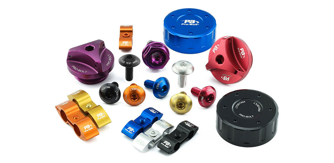 • Aluminium: Blue, Black, Gold, Orange, Purple, Red, Silver, or Unanodised.